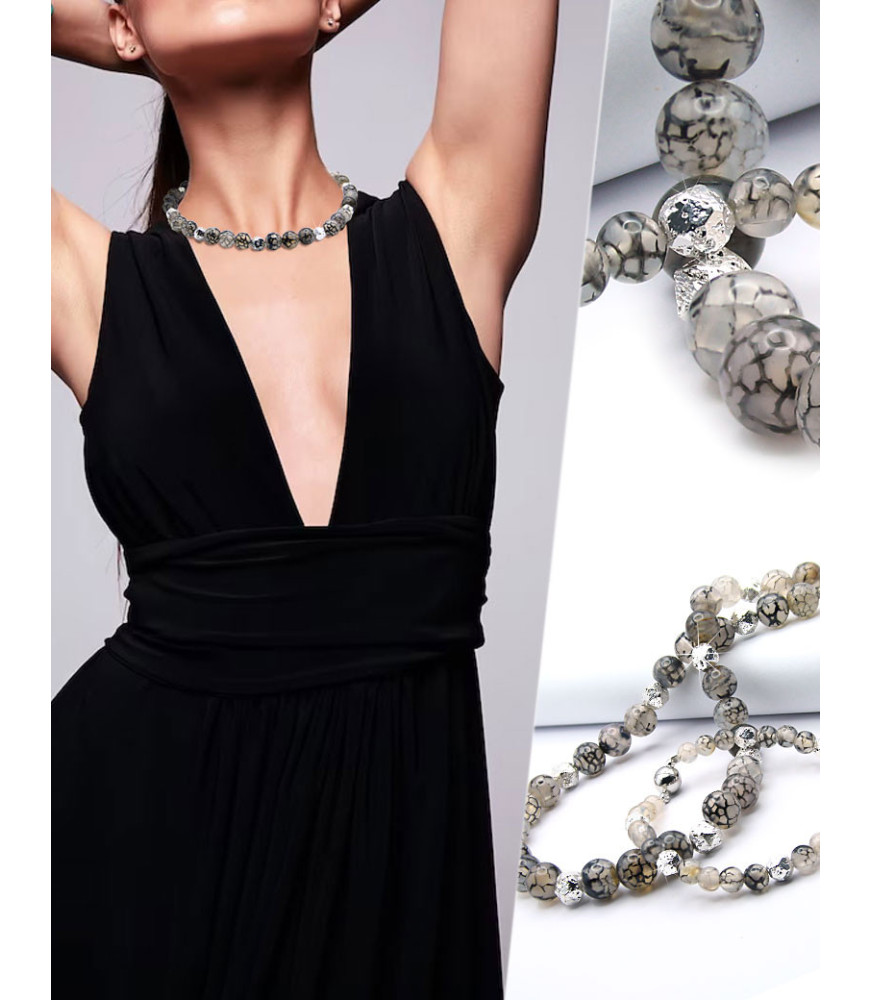 Conjunto de 2 piezas Dragón Collar-Choker y Pulsera, piedra de ágata, hematita