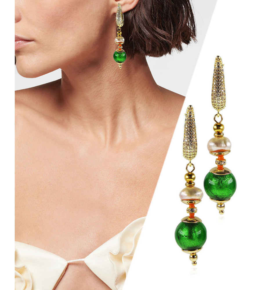 'Corfou' 18K Gold Ohrhänger mit Barockperlen, Muranoglasperlen